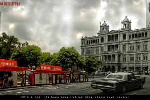 干諾道中北至遮打道原是十九世紀末期填海新得土地,右方第二代香港會於一八九七年建成,樓高四層,昔日只供英國人進入,連何東都拒諸門外。該會建築於八十年代拆卸,原址改建成第三代香港會所大廈。左方香港大會堂屹立於五十年代填海的土地上,一九六二年落成啟用,由於其獨特地位,已被列為一級歷史建築。Kent Mak製作